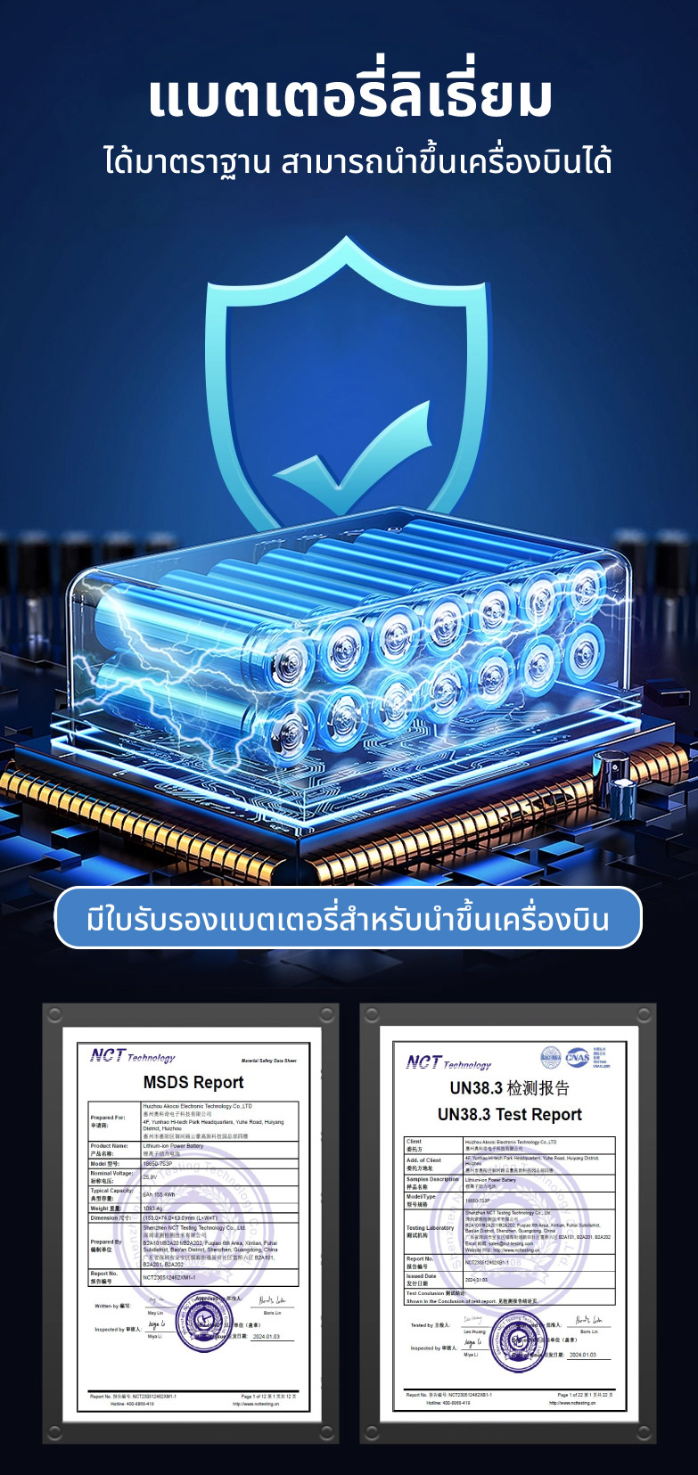 - แบตเตอรี่ลิเธียม: 6Ah สามารถนำขึ้นเครื่องบินได้ เดินทางได้ไกลสูงสุด 10 กม.