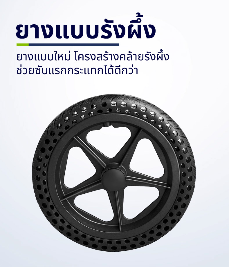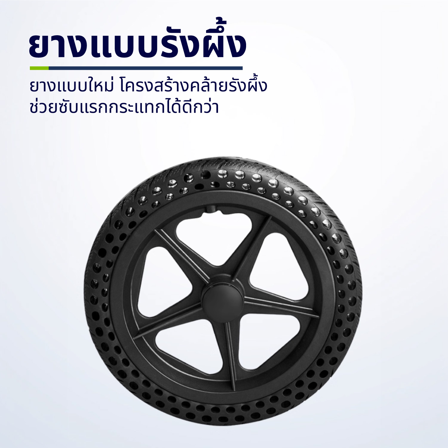 - ยางตัน ทนทาน ไม่ต้องเติมลม: ล้อหน้าและล้อหลังเป็น ยางตัน ทำให้คุณมั่นใจได้ว่าจะไม่มีปัญหายางแบนหรือต้องคอยเติมลม พร้อมล้อกันสะเทือนที่นุ่มนวล