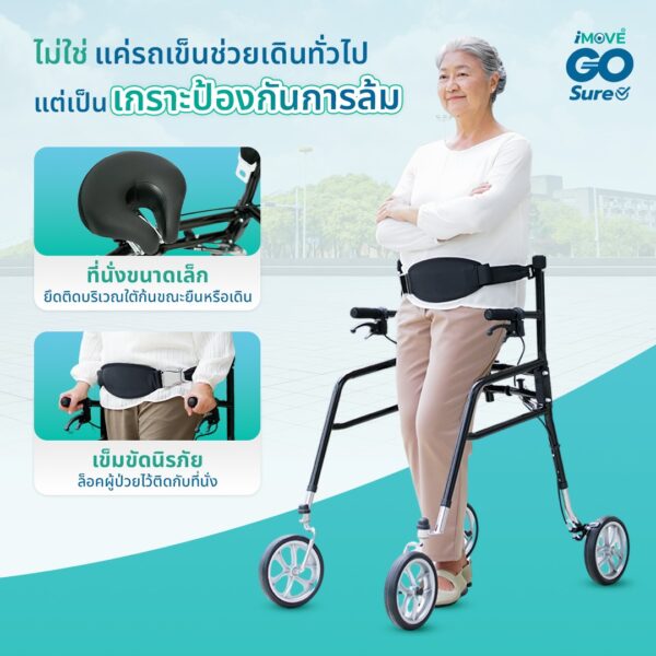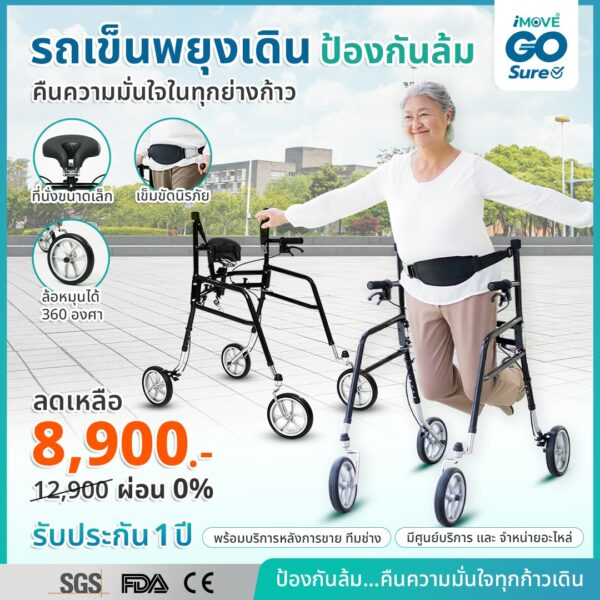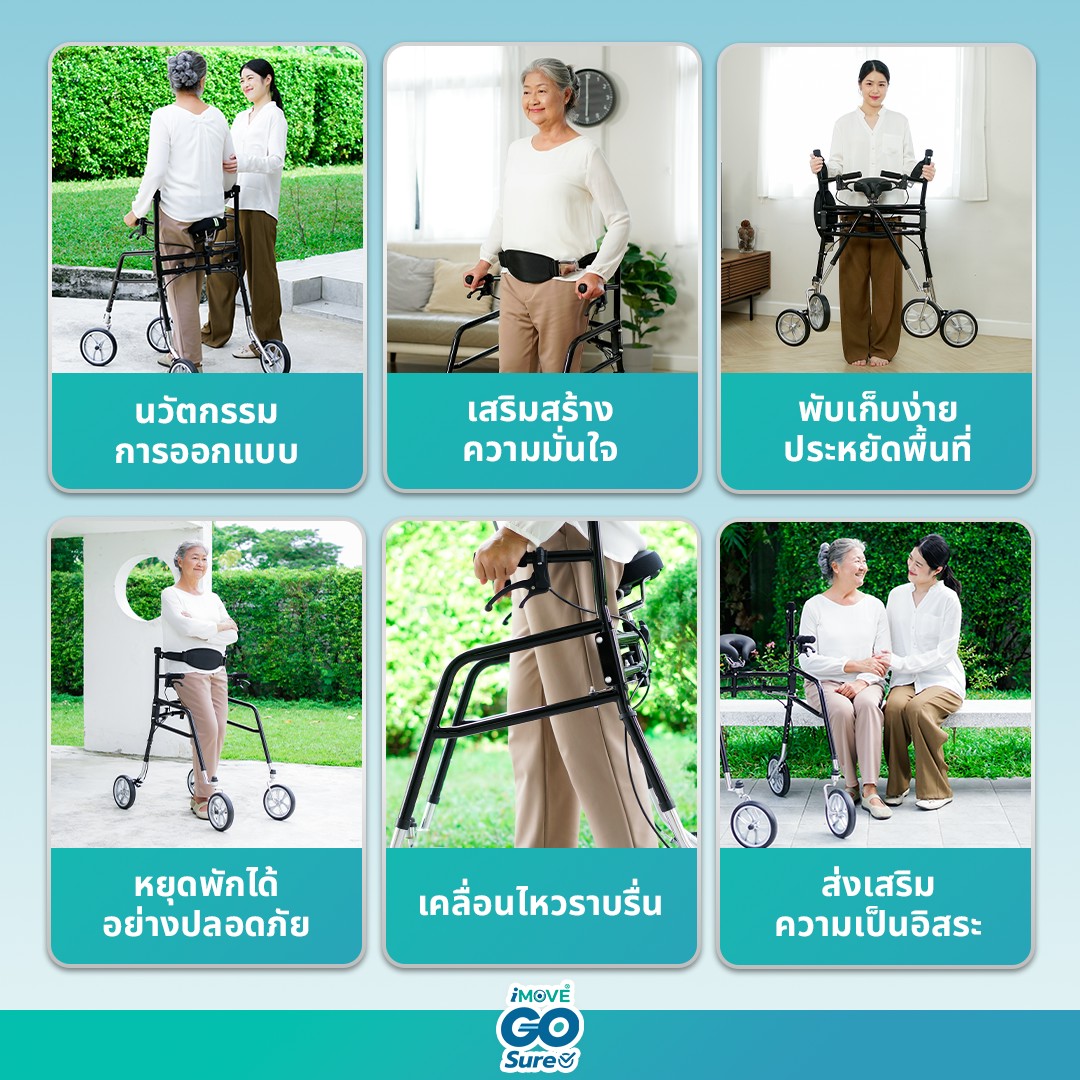 เราเข้าใจดีว่าความกังวลขอผู้ที่มีปัญหาด้านการเดิน อุปสรรคเหล่านั้นมันไปลดทอนความสุขและอิสระในการใช้ชีวิต iMOVE GO SURE รถเข็นพยุงเดินรุ่นใหม่ล่าสุด จึงถูกสร้างสรรค์ขึ้นมาเพื่อทำลายข้อจำกัดเหล่านั้น ด้วยการผสมผสานนวัตกรรมด้านความปลอดภัยเข้ากับการออกแบบที่เข้าใจผู้ใช้งานอย่างแท้จริง
